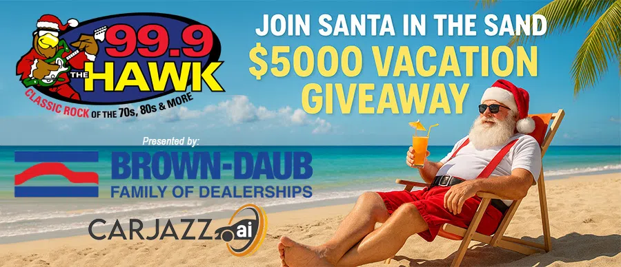 The holidays are almost here, and 99.9 The Hawk is making your season even brighter! We're teaming up with Santa to give you the ultimate gift-a chance to win $5,000 to put toward a beach vacation or anything you want.